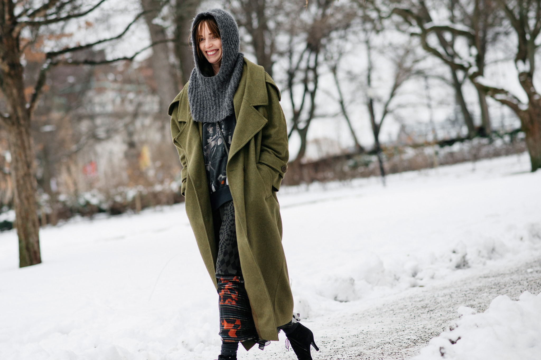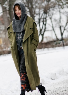 In winter, it is better to choose informal images: a coat or a warm jacket can be combined with a frivolous feminine dress, textured shoes and a men's hat or a knitted hat.