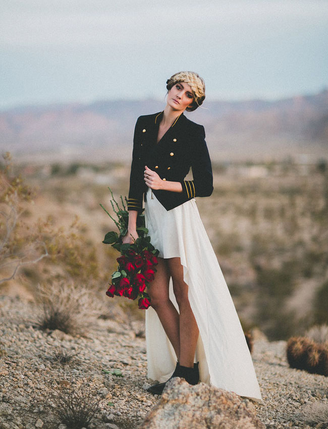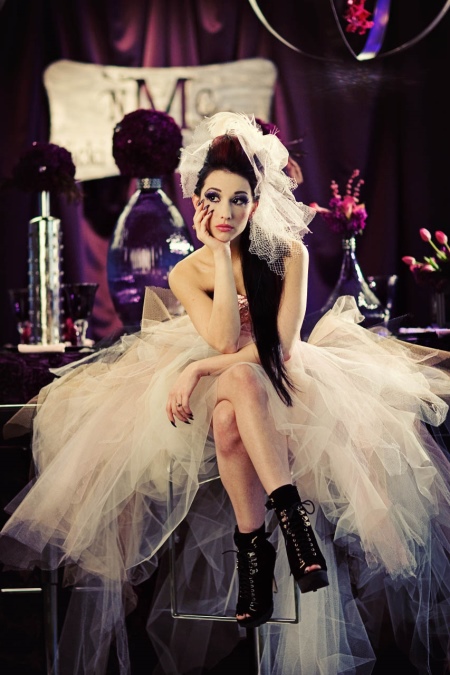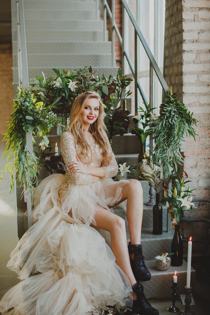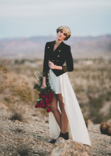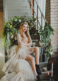 The image of the bride is different call, non-traditional cut and often complemented by leather leather jacket or denim jacket. The color of the dress can be white, powdery, the product has a multi-layered and creative combination with accessories (black hat, dark tights, corsets, sneakers, shoes with a tractor sole).