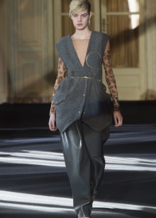Ripped, faded jeans, a two-layer top and a light waistcoat will help create a classic grunge. If you want to add notes of romance to it, you can combine a light chiffon top with narrow ragged trousers.