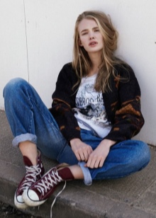 Jeans are considered to be the basic element of the ensemble, but tight pants and leggings are also good. This direction is suitable for everyday sets. There is no eccentricity in it, but freedom is felt.