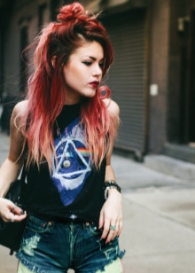 Classic grunge hairstyles are loose curls or horse tail. Lightly disheveled and matted hair is exactly what you need. A casual look is the basis of style. But the effect of greasiness is excluded.