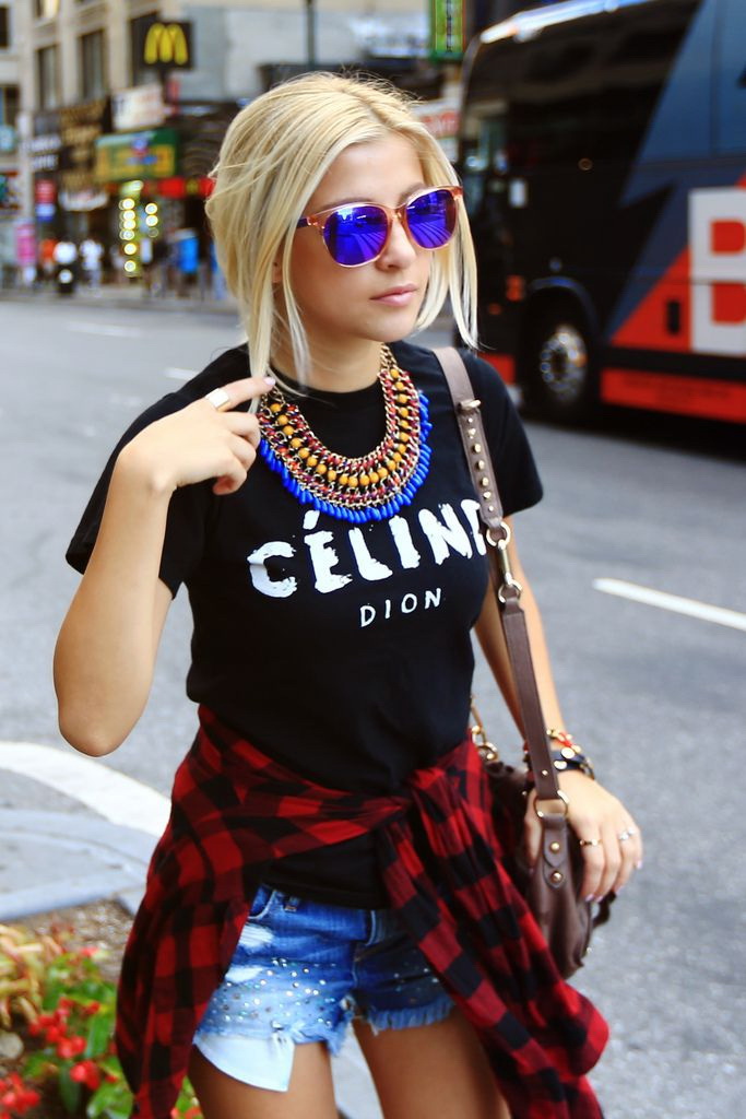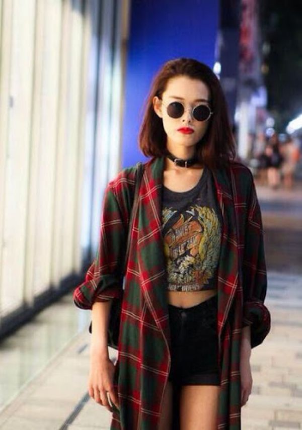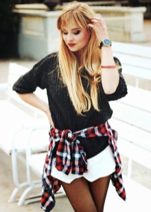 - Flannel plaid shirt. It is worn on its own, in a unbuttoned form it complements a large print T-shirt and denim shorts or it can be an accessory tied around the waist.