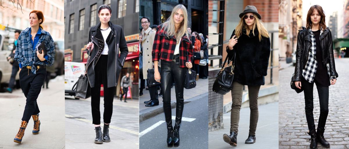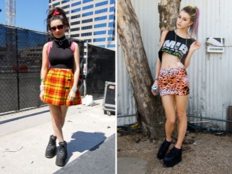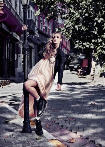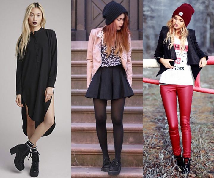 The choice of shoes depends on the elements of the outfit: the more airy and feminine the garments, the more massive the shoes should be. Conversely, a heavy one needs shoes with a smaller tractor tread (or without it) and the absence of metallic decor (spikes, buckles, eyelets).