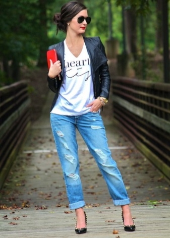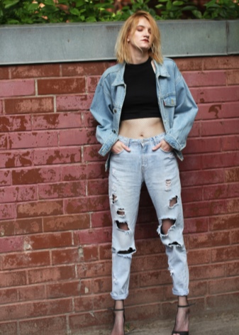 - Jeans jackets. The most preferable is the choice of products with the texture worn to holes, the most worn and faded look. The best style is considered to be straight or somewhat narrowed downwards.