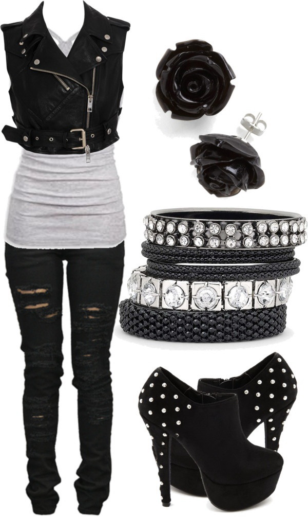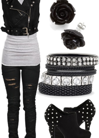 A typical representative of this style is Lady Gaga, who contributes to the spread of eclecticism in the style of dressing. Each set requires a careful approach to the combination of things. Leather clothing (trousers, jacket, skirt) and coarse jewelry, as well as massive shoes and outrageous elements of clothing, become an indispensable attribute of the attire.