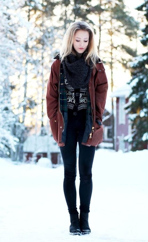 Each ensemble has a multi-layered component. A true casual style should consist of several things worn at the same time. The sweater can be worn over a shirt and top, complemented with a voluminous scarf.