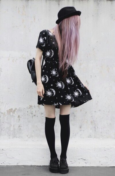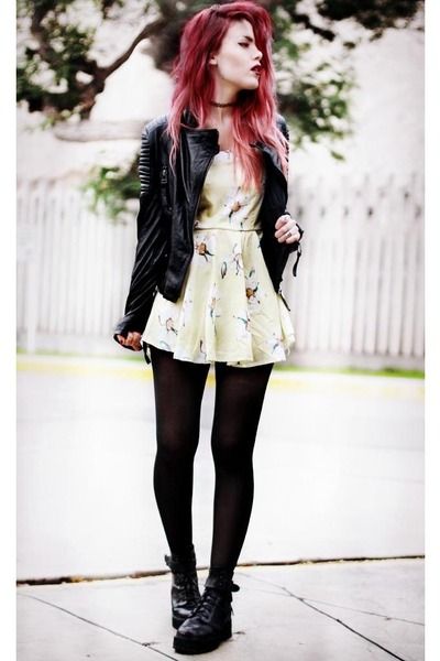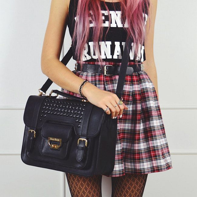 When composing a soft-grunge outfit, you can safely experiment by combining things that are different in style. He is more sleek, has its own gloss, due to the presence of open tops, corsets, leather jackets with a print.