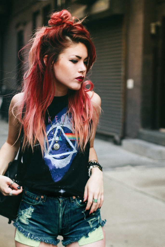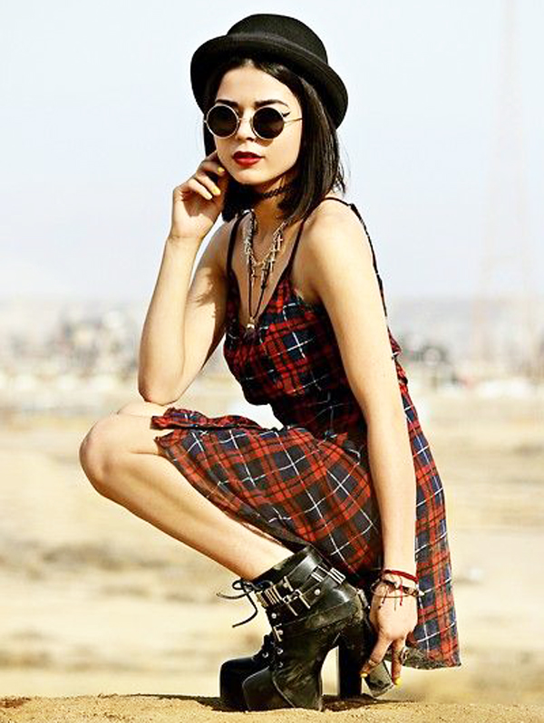 This direction is intended to add to the controversial grunge-style shades of tenderness and romance. The combination of grunge and hippie makes the image extraordinary and exclusive. When making a set, it is important to review the combination of shades. If the basic grunge style does not accept bright colors, then the hippie just needs them. You can combine two styles into one by adding some bright colors to the set.