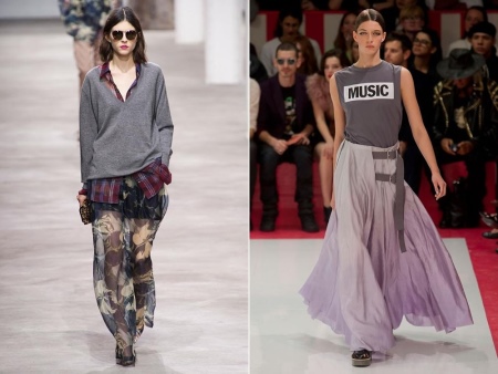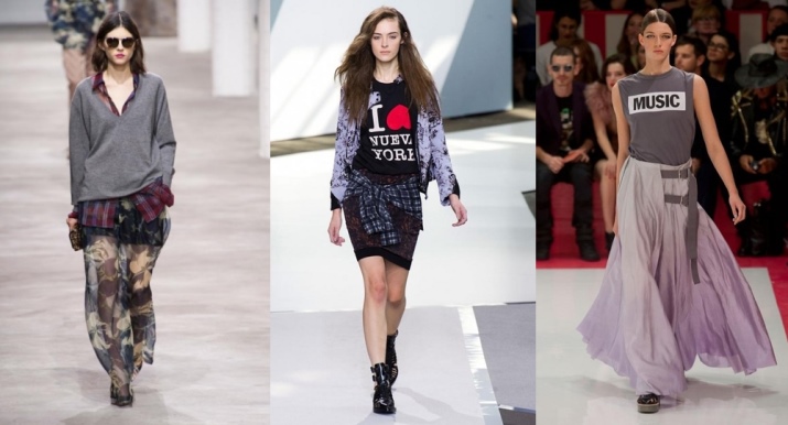 This trend combines femininity and creative carelessness. The combination of grunge with casual elements and shades of romance in dark and light colors looks original and stylish. It is expressed in a mix of several styles, allows you to combine prints and faded T-shirts in one outfit.