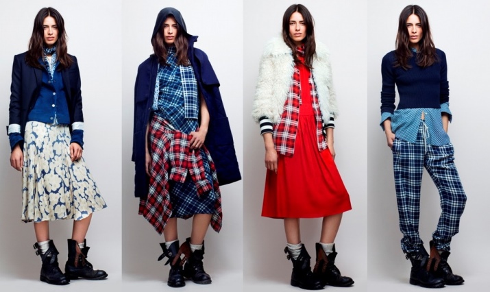 In addition to the cell, today there is a strip. And from contrasts, a combination of socks and frills, massive boots and stockings, army boots and warm shades of dress elements are relevant. In fashion mini skirts, short denim shorts and checked leggings. Light monophonic shades and inconspicuous floral prints can be added to the set.