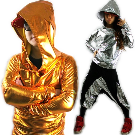 - Along with loose sets it is appropriate to wear tight clothes: T-shirts, tops, shorts, breeches and short jackets. The hip-hop style is democratic, so experimenting with it is easy. It is allowed that one detail is knocked out of the general image. It can be a T-shirt with certain symbols and logos or a T-shirt turned inside out. Sometimes clothes can be multi-layered: a wide T-shirt is worn on the top, and a vest with a hood on top.