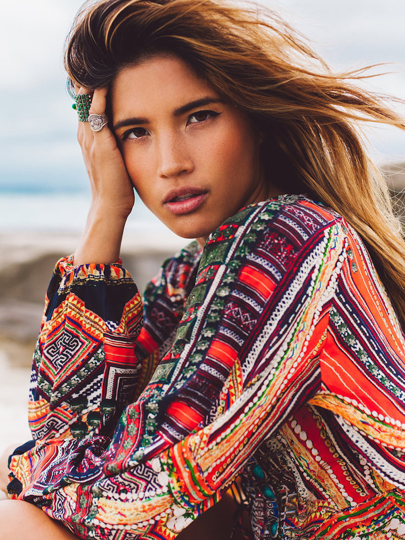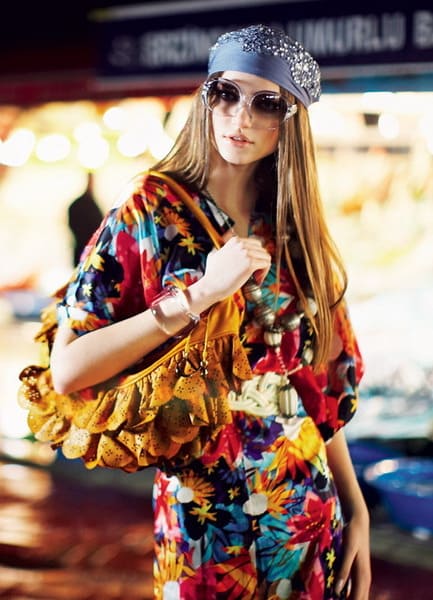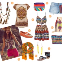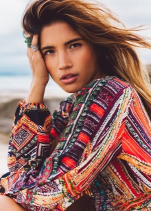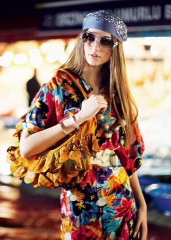 The hippie style is inherent in an incredible riot of colors of different shades. They can be natural, pastel, saturated or acidic. Favorite prints of this direction are rainbow circles of irregular shapes, abstract patterns, ethnic (Indian and Moroccan ornaments), geometric motifs and floral themes.