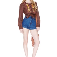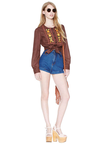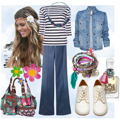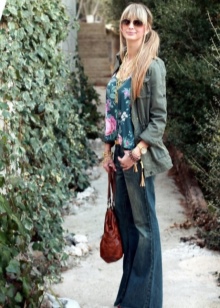 Denim clothing is a trademark of hippie style. In addition to jeans in fashion shorts, vests, jackets and skirts made of soft and thin denim.