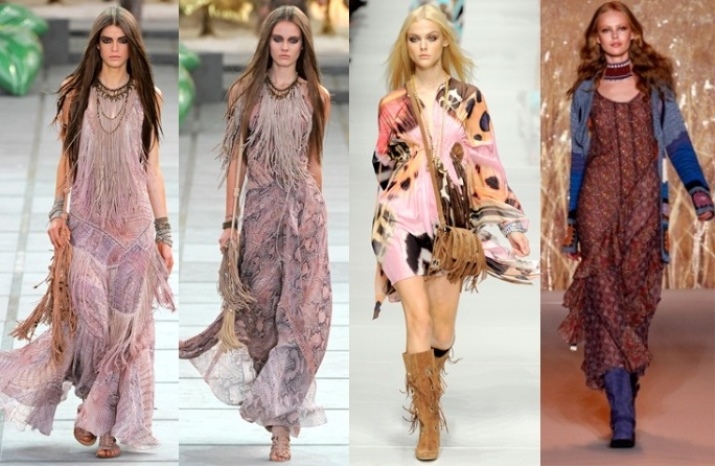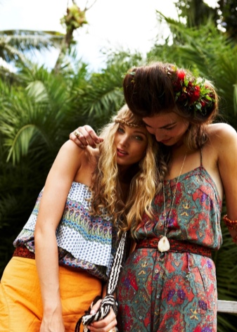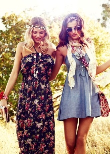 No wardrobe girl hippie can not do without a feminine dress and a sundress. Since the movement promoted freedom in love, they wore this clothing without underwear. Often the products were translucent. Their distinguishing feature is the presence of a print.