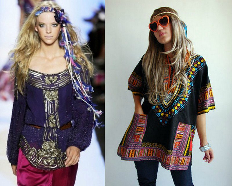 This style is not subject to fashionable moods. It exists outside of time and is distinguished by a combination of incompatible things. Hippies are inherent in mixing styles, the lack of rules and canons in creating a unique image.