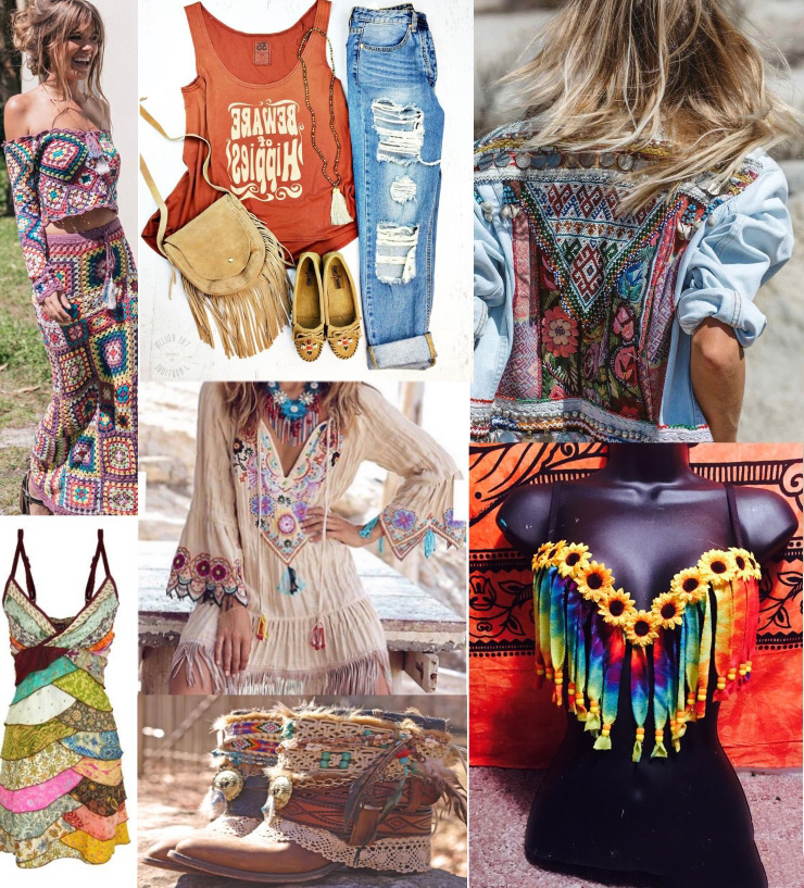Hippie attire is a mixture of bright prints in the ensemble. These clothes are bright, colorful and stand out from the crowd. It attracts the attention of others.