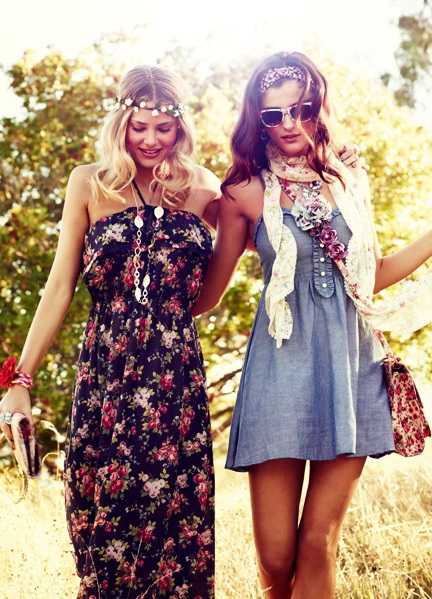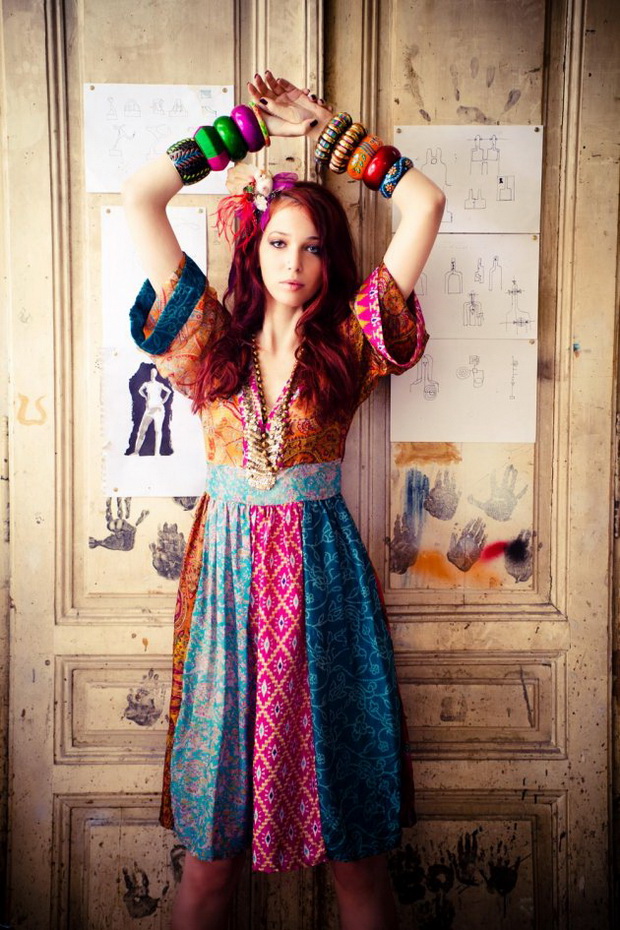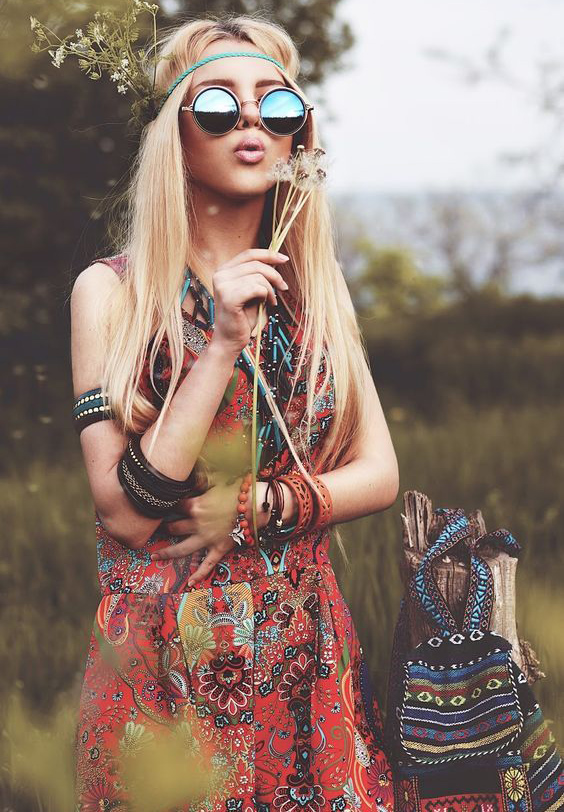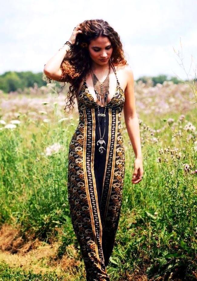 Hippie style dresses are characterized by bright colors, an abundance of accessories and a large range of variegated colors (floral, geometric, ethnic).