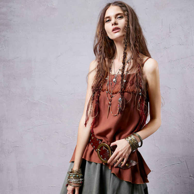 Hippie-style is self-expression, it is spiritualized by its closeness to nature. This is an endless flight of fancy, clothing for the creative stratum of society, which does not accept the framework and limitations. These outfits are designed for those who seek to always be in the center of events.