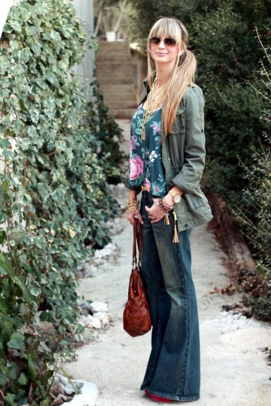 The basis of the casual look is flared jeans. Thanks to the hippie, this product has moved from the category of working clothes in the standard style. Often, its length can reach the floor or completely cover the leg.