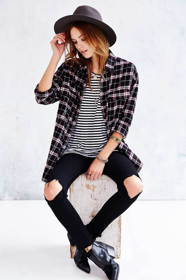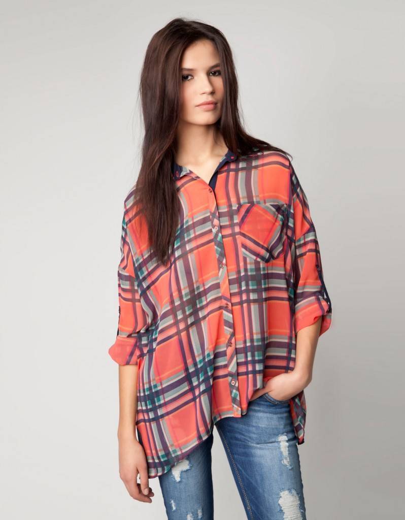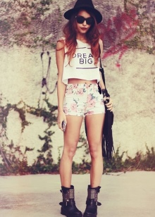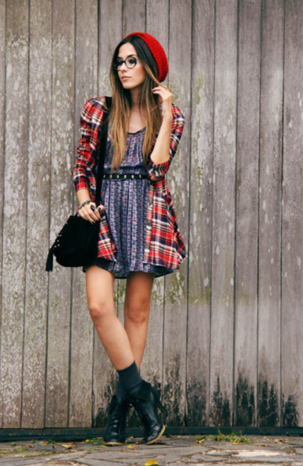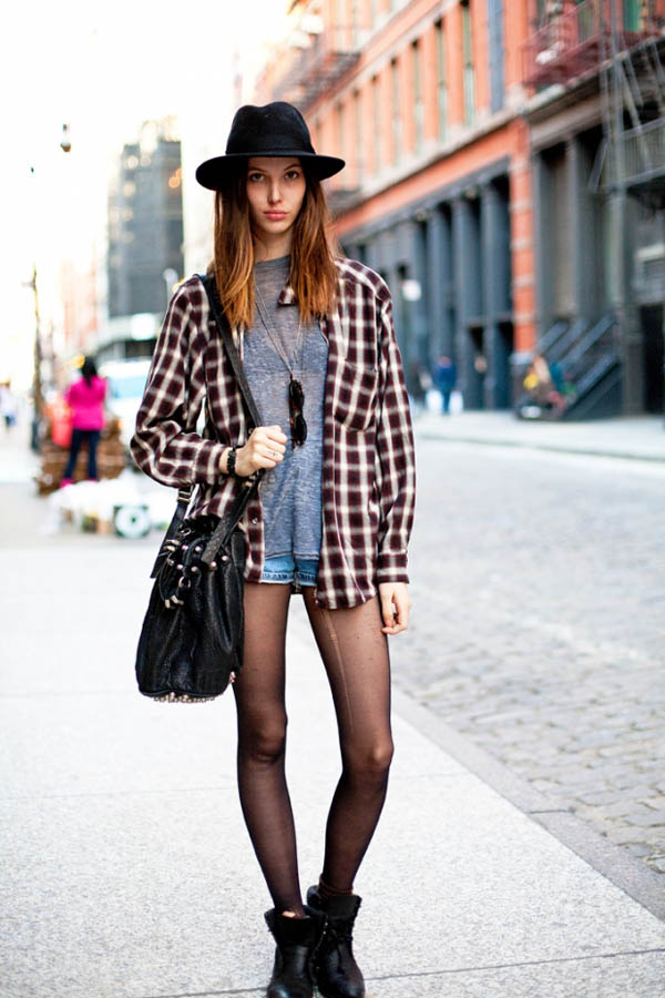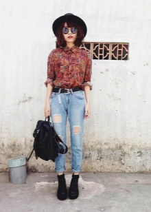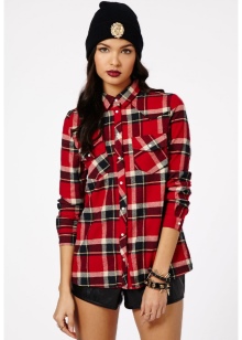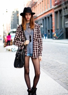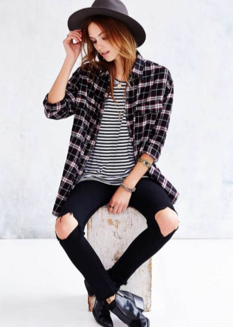 Another popular detail of the hipsters' female wardrobe is the male-cut flannel shirt with a print in the form of a large or small cell. The shirt can be tucked into pants or worn unbuttoned upholstery, wearing a t-shirt or crop top underneath.