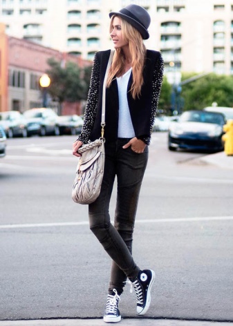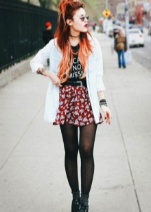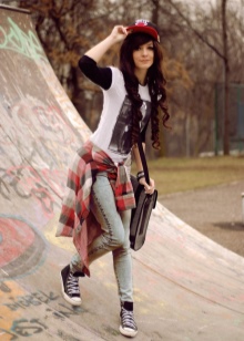 On top of the representatives of the youth subculture can wear various T-shirts or T-shirts with original prints. The image can be any, the main thing is that this detail of the wardrobe gives the image of spectacularity.