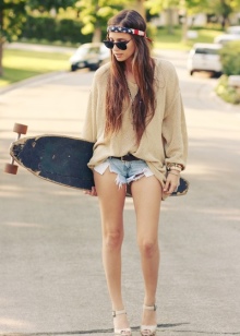 In addition to jeans and trousers, girls can be found in long models of shorts, at least in skirts. Among the skirts are preferred models with pleats and in the form of a trapeze. Images with skirts girl hipsters are usually complemented by pantyhose or golf bright colors.