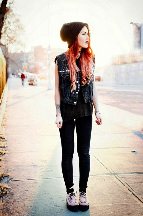 Hipster girls can choose a hat or an original cap as a headdress, some cost them a regular hood from a jacket or a parka. Also, many girls prefer hats of a wide variety of styles that look pretty cute on them.