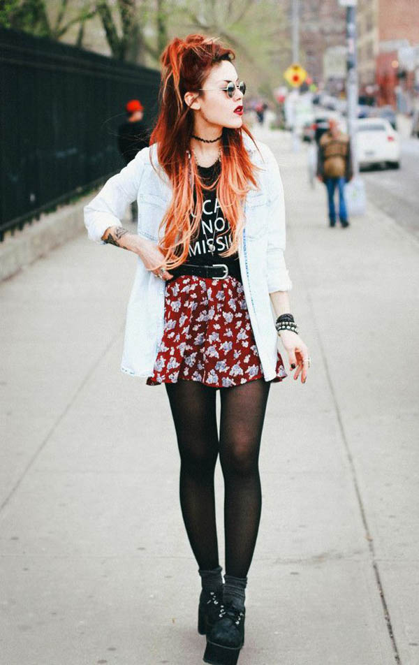 Oddly enough, freedom-loving hipster girls sometimes wear dresses. At the very time, various retro models decorated with lace elements and a small floral print will be suitable for creating an image. The source of inspiration can be clothes from the wardrobe of moms or grandmothers, which the girls diligently fit on the figure and slightly shortened. However, in order not to get the image of the stygi, you need to choose the right shoes with a flat sole for such a dress.