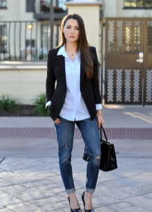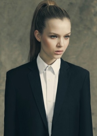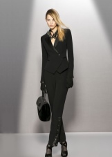 The most popular in this direction is a strict suit. It can be equipped with both pants and skirt. The main element of this ensemble is recognized jacket with a collar in a classic design.