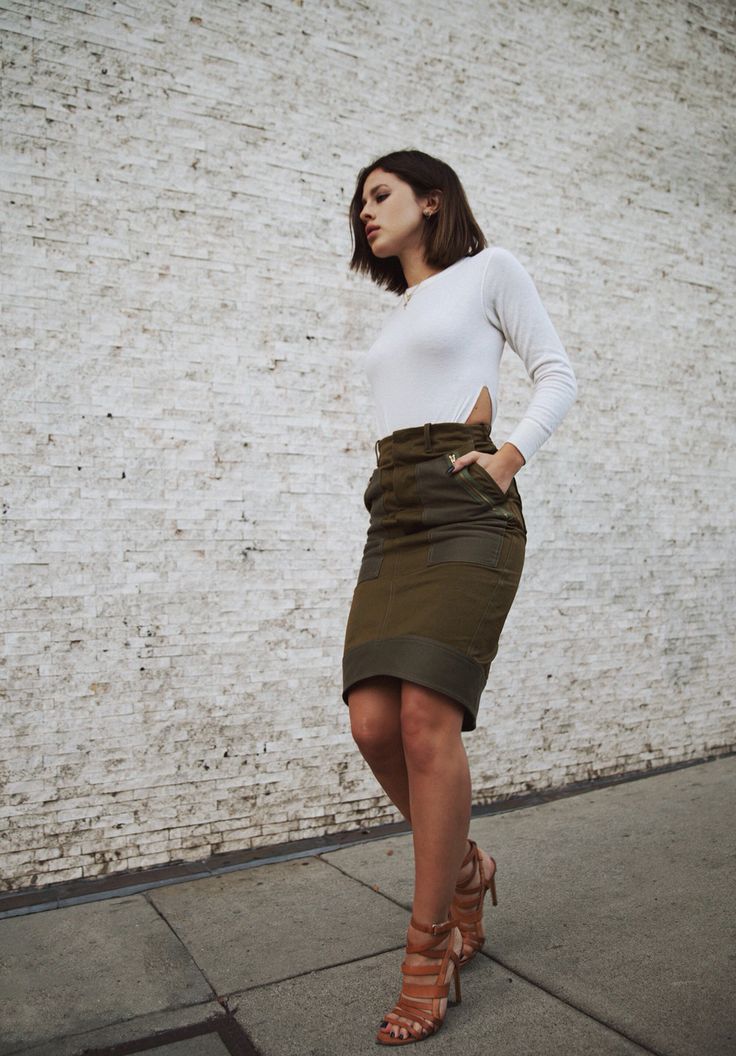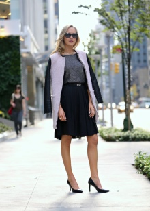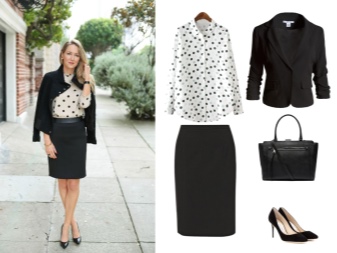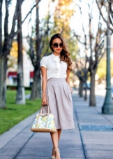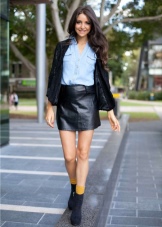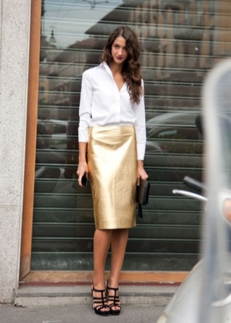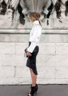 Some leather elements are also introduced into the style. Today, leather skirts can be combined with a white business shirt. These can be both pencil models and wider things. It is recommended to choose outfits with length to the knee or slightly above the knee.
