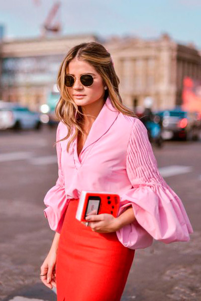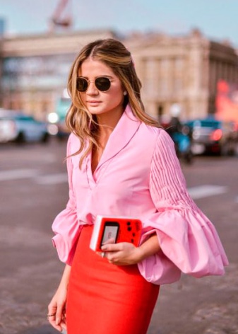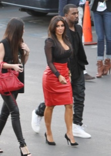 Many stars today appear in public in classic attire, painted in a contrasting combination of red and black. As a rule, these are high skirts and free-cut shirts.