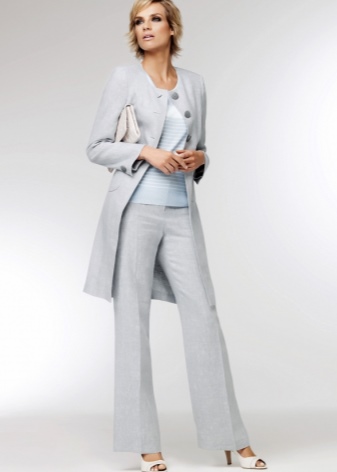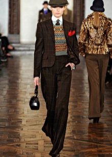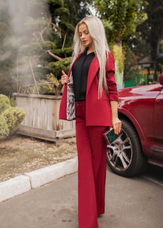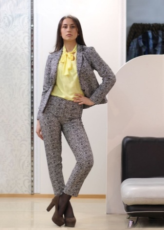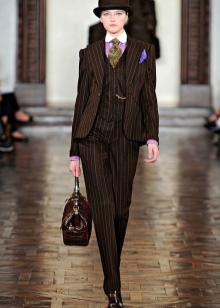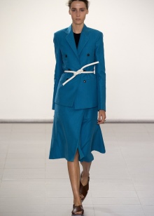 Former relevance and popularity return trouser suits in which the jacket and trousers (skirt) are made in the same color.