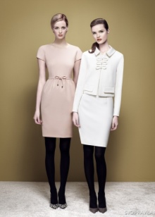 - Incredibly sexy and feminine looks simple combination of a straight or form-fitting dress with a jacket. It is recommended to pick up things in contrasting colors. Monochrome elements simply merge with each other. The most harmonious look would be a jacket with an English collar.