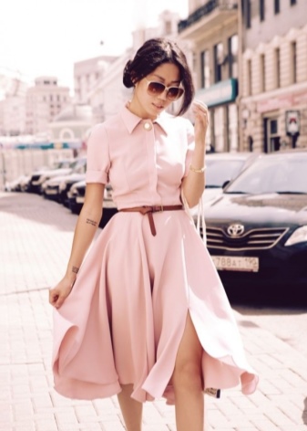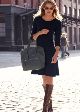 - For the office, you can wear an elegant dress in a classic style. This may be the usual black outfit with a white collar, a striped dress or closed clothes of neutral colors. Do not pick up too short copies. The length should not be much higher than the knee.