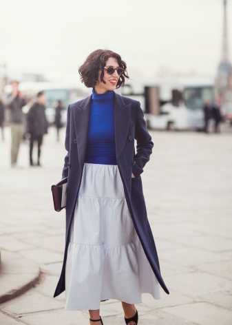 - In winter, you can wear classic straight and fitted coats with insulation. It is recommended to select outfits of dark tones. Outerwear with a stand-up collar will look especially bright and attractive.