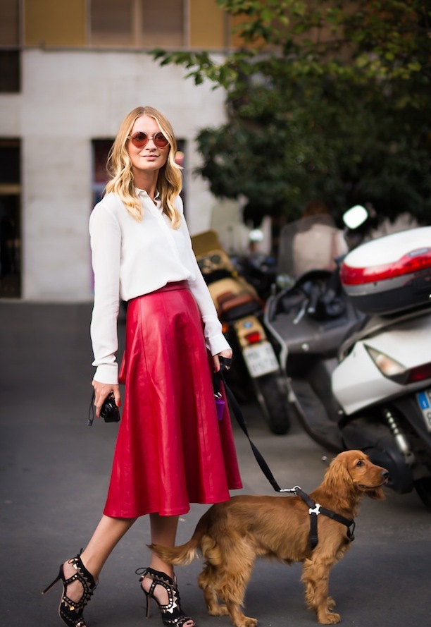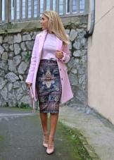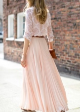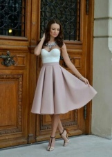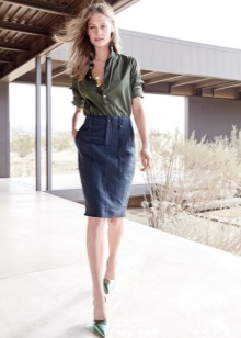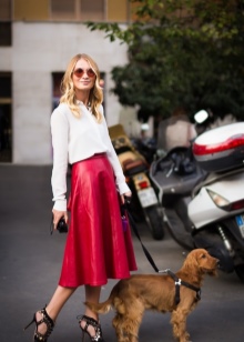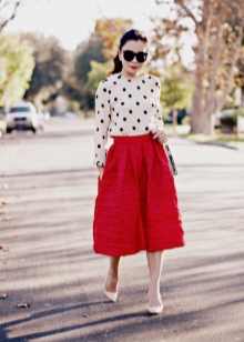 It is necessary to take into account the moment that the waistline must necessarily be medium or high. The top in this case should be monotonous or darker than the bottom tucked into the skirt.