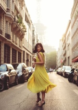 Also in this case, a version of the dress is possible with a decoratively sewn additional skirt, a wave coming from the waistline. The top of the product must be tight-fitting. In this case, for thin girls, the most suitable option would be a model with a bodice that stands out from the overall picture, for example, decorated with embroidery or just a different color from the main body of the product.