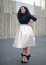 Fat girls should pay attention to the models of skirts made of thin and flying fabrics. This may be a half-sun skirt with delicate frills or multi-layered. Not bad also on a magnificent figure models from more dense materials with a smell, and also direct strict skirts will look.