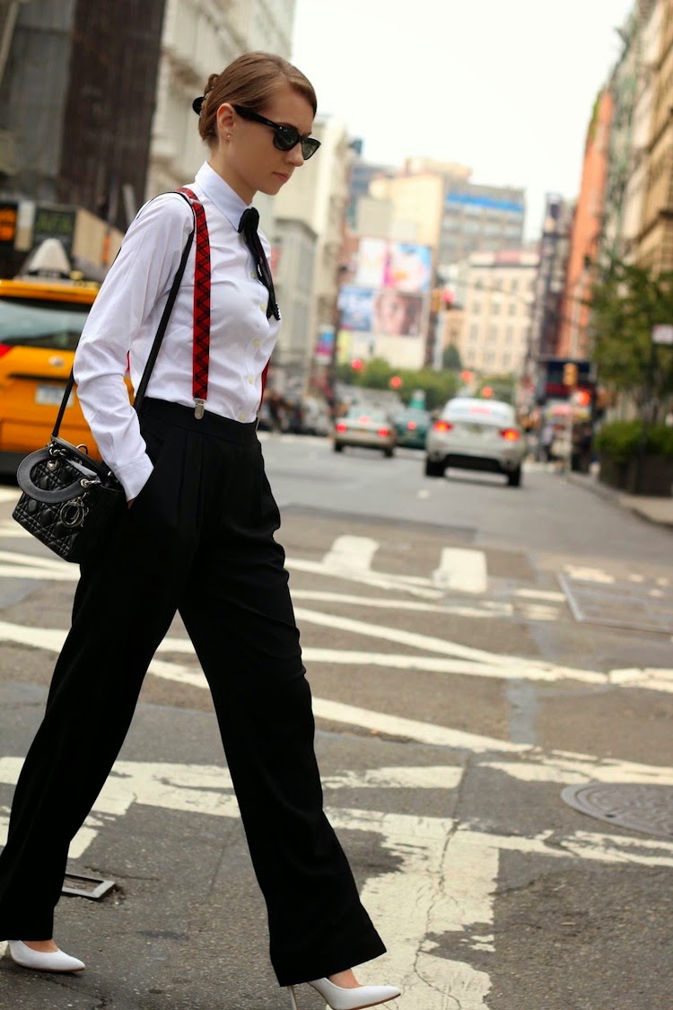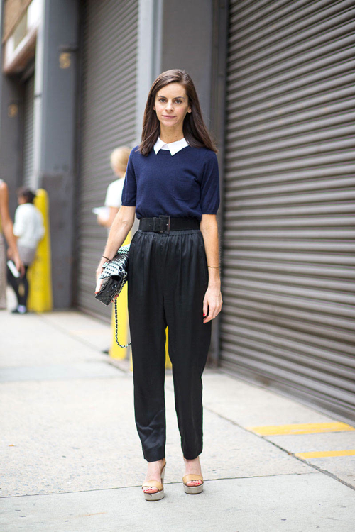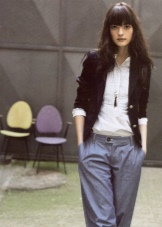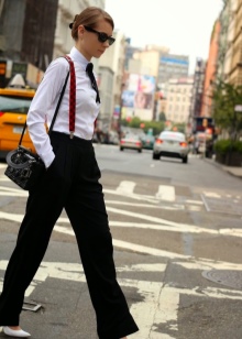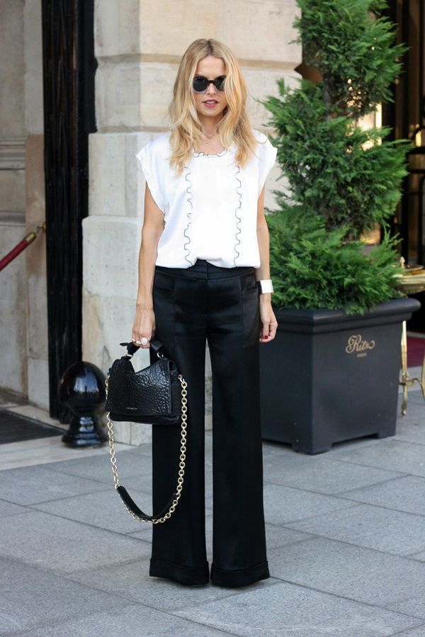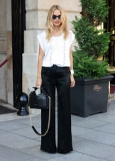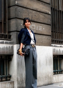 In the case of a business woman it all depends on the dress code. If it is strict, then it is better to give preference to straight strict trousers, and if it is absent, then you can try to combine a beautiful bow with wide pants made of light fabric.