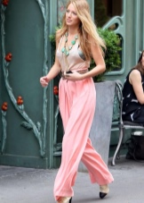Stylists highly recommend to buy thin ones comfortable and at the same time spectacular flared pants with a length slightly below the middle of the calf. They will look incredibly spectacular in combination with beige simple pumps. Also in this case is not excluded the option of narrowed trousers at high waist.