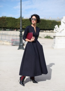 Dresses are an integral part of this trend. As a rule, they should be performed in a neutral scale or a monotone dark shade. For solemn or official occasions, the combination in two colors - bright and bed - is allowed.