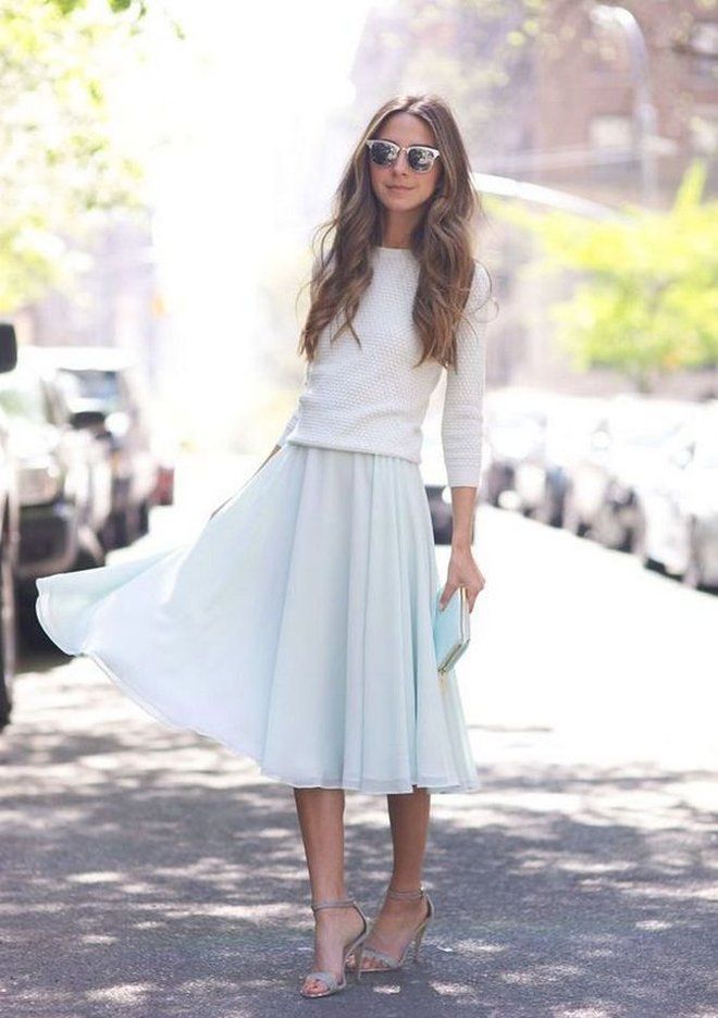 The most popular option for skirts in the style of Lady Like is a pencil skirt style. High waistline and form-fitting silhouette can make a girl incomparable. The length of such a product must be below the knees. This option will be optimal for office and business meetings.