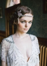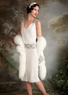 - Retro and vintage are becoming a popular theme for modern weddings. Fashion 20's is often used by brides to give their wedding dress elegance and femininity. The most relevant material for them is silk and satin of light shades, which are additionally decorated with lace and pearls. The maxi length is usually used, and the silhouette is underlined by a low waist. Such a dress can be complemented by spectacular long gloves, which will be the main decoration of the sophisticated pens of the girl, as well as multi-layered pearl beads and headband.