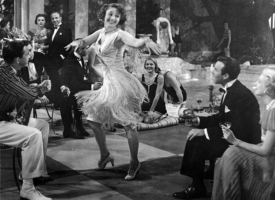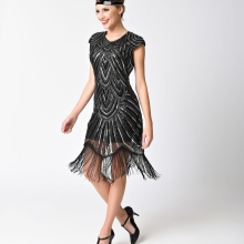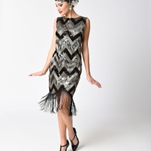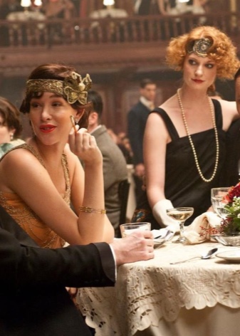 The cut of evening dresses necessarily slightly expanded downwards so that the girl who lived in the era of the revival of jazz, shimmy and foxtrot was comfortable to move on the dance floor. Dancing at the time really became a real passion for many women. That is why various elements of decor came into fashion, for example, “pendants”, which actively shook the girl during the dance and gave her a certain charm.