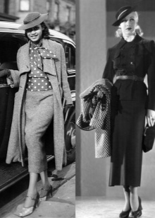 For business women, they also began to actively produce stylish suits. As an evening option - satin dresses with a deep neckline, which very effectively emphasized the female form. Popular hats such as a bell-cap, a current and berets actively burst into the everyday life of women's fashion.