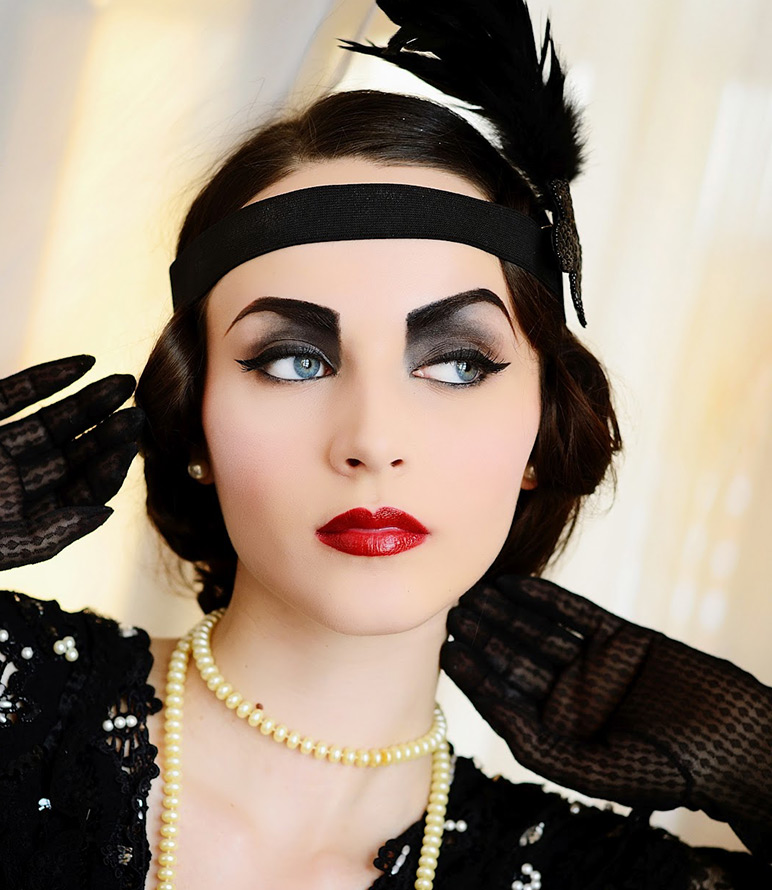 And it is during this period that cosmetics becomes the “best friend” of every woman. Her active use in combination with spectacular outfits made the ladies very extravagant, but at the same time incredibly flirtatious personalities. Properly applied long arrows, rouge, dark shadows, as well as red lipstick and the same shade of nail polish emphasize and enhance the natural beauty of young girls.