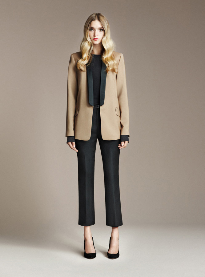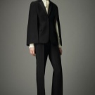 - jacket male cut, minimally emphasizing the contours of the female figure (with the lack of decoration, drapery);