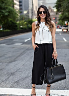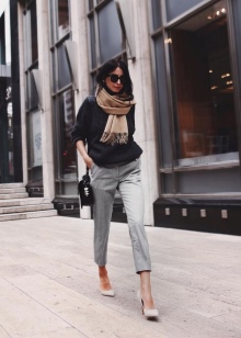 Youth business casual can be made from a white classic blouse with short sleeves, black pants and a scarf of the same shade of the pants. The stylish accessories of the bow will be the addition of beige or black: open shoes, clutch bag and a thin belt. Loose hair and natural makeup - and the urban business image is ready.