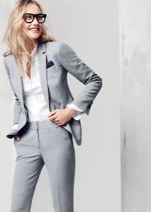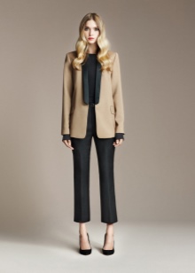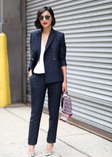 - Trouser set of official style can be of different styles. This is a straight jacket, fitted jacket, pants with arrows.