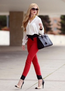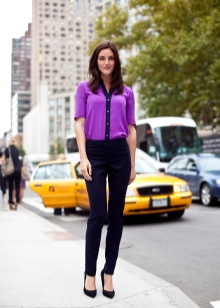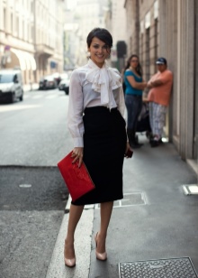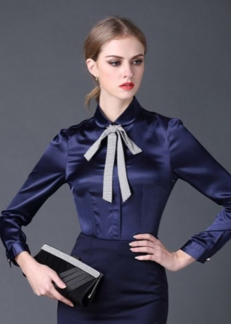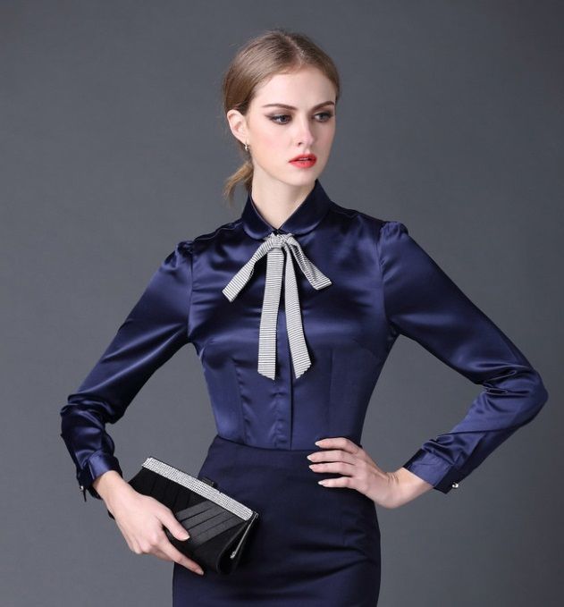 Formal wear adheres to predominantly classic colors. The main part of this wardrobe consists of white, black, brown, all shades of gray, beige and blue. Style prints are cell, stripe, polka dots. Aggressively brilliant texture of the material (rhinestones, sequins, sequins) is excluded. Blouses can be made of iridescent satin or silk.